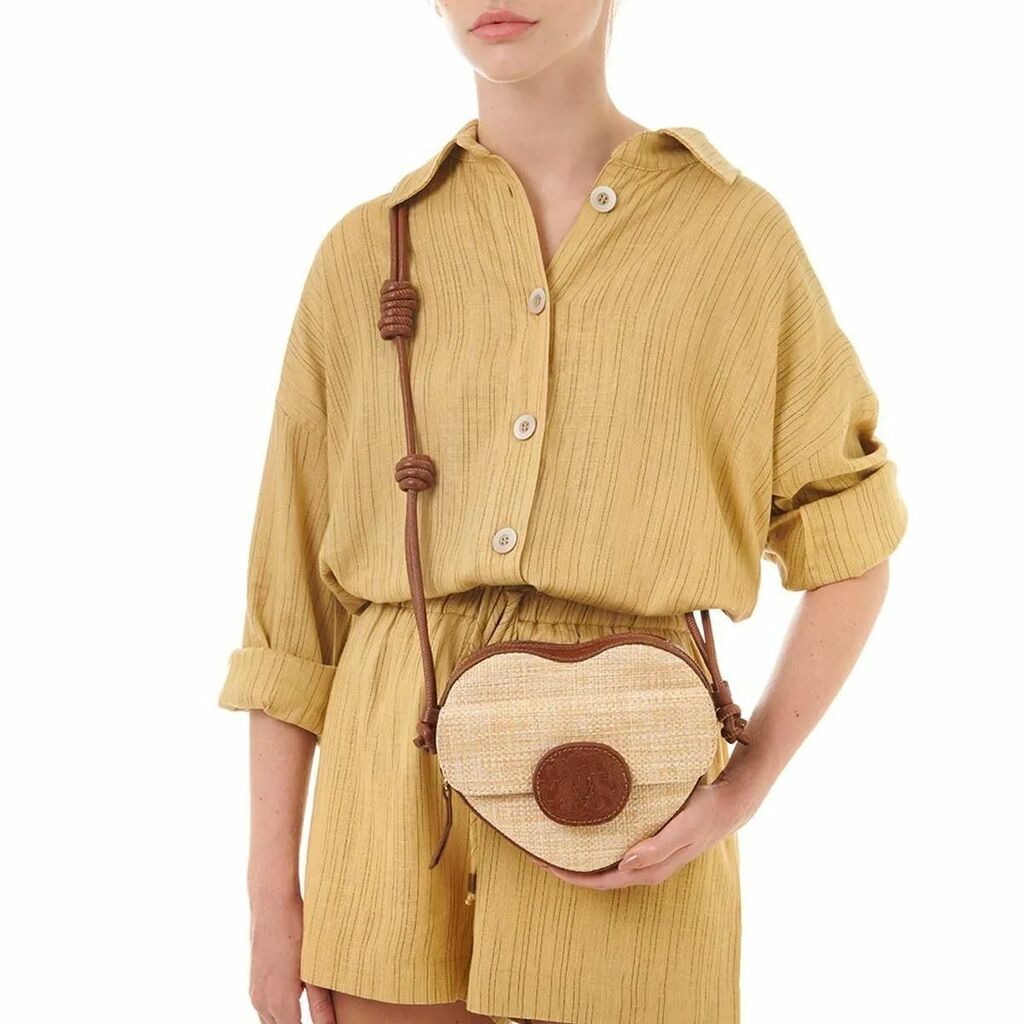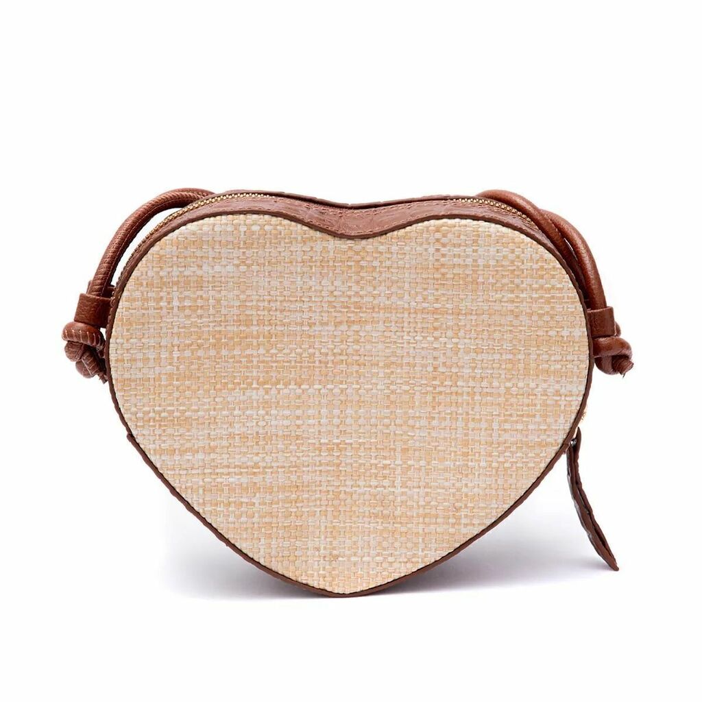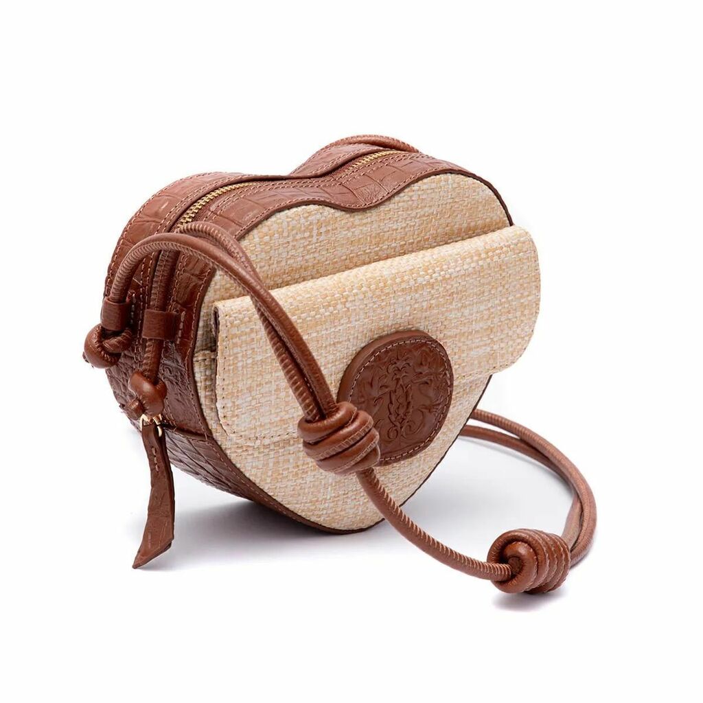 Com o shape em forma de coração é realmente impossível não se apaixonar por essa bolsa. Combina elementos naturais da palha com a sofisticação do couro. Seu design delicado é Ideal para compor looks casuais com muito charme e modernidade. Possui alça longa ajustável em couro natural com detalhe de nó nas extremidades, possibilitando a versatilidade ao uso da bolsa na transversal. Seu fechamento em ziper com puxador de couro, garante a segurança dos seus itens. O delicado trabalho de aplicação artesanal da logomarca no couro natural é um charme a parte. Ideal para looks fresh com informação de moda.